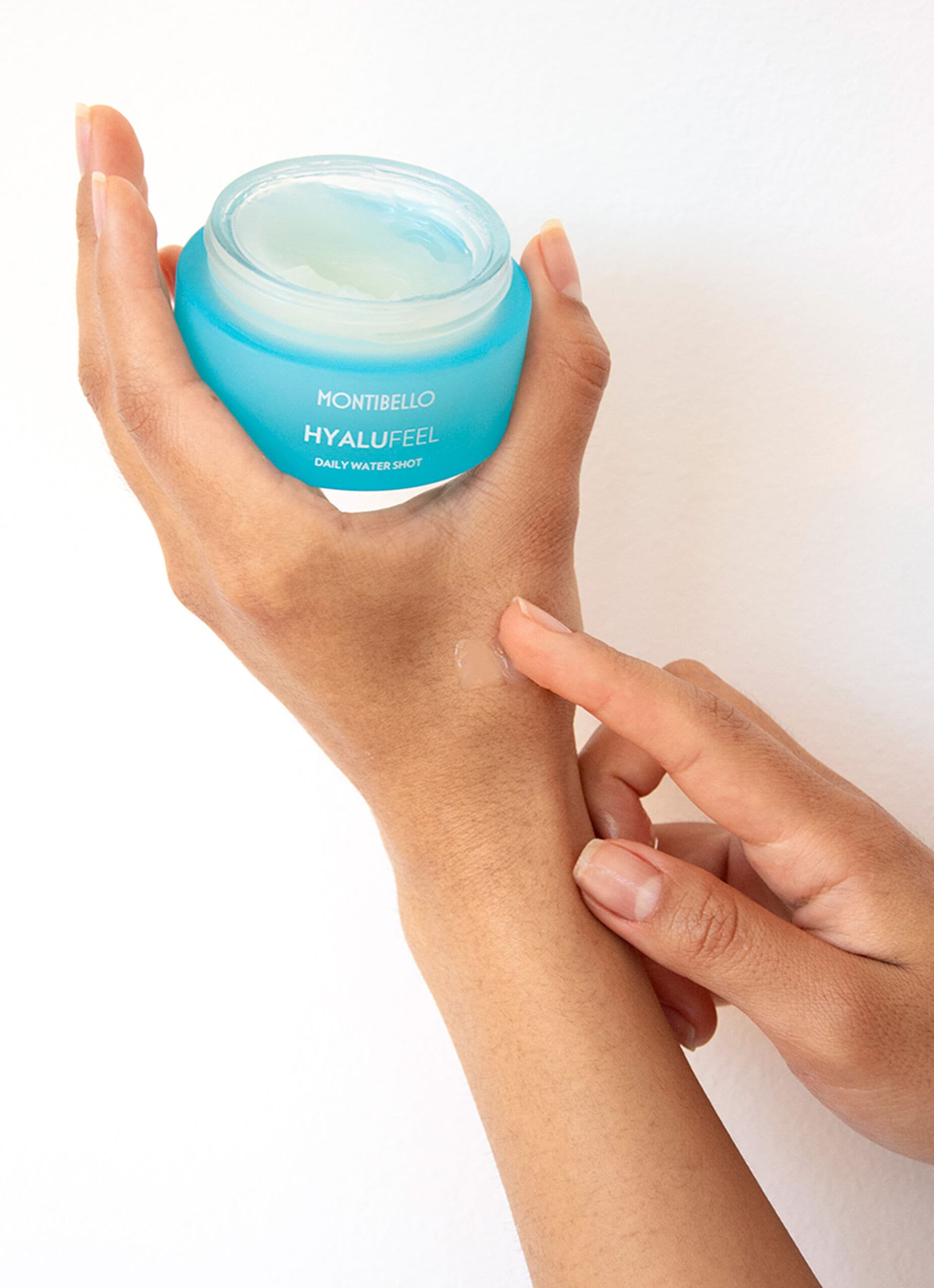 Formulado con alta concentración de ácido hialurónico, el activo hidratante por excelencia, y ectoína, ingrediente 100% puro y natural que protege la piel de la polución ambiental creando una barrera protectora natural. El 87% de sus activos son de origen natural. Fórmula vegana.